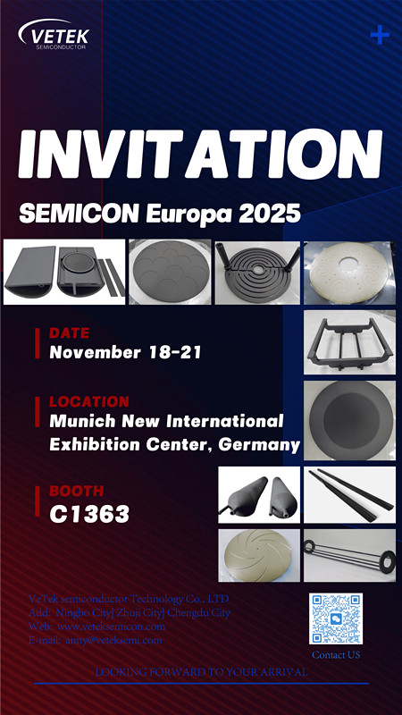 VETEK participará en la exposición SEMICON Europa 2025 en Munich, Alemania. Damos una calurosa bienvenida a todos los clientes a visitar nuestro stand C1363 para comunicarse e intercambiar.