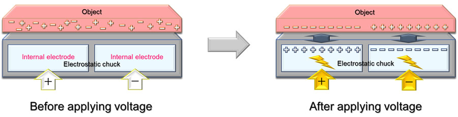 Un fuck electrostático (ESC) es un tipo especial de chuck que utiliza fuerza electrostática para sostener, presionar y recoger objetos (piezas de trabajo). Cualquier material conlleva cargas positivas y negativas que son invisibles a simple vista. Cuando el material se coloca en el ESC y se aplica un voltaje bipolar a los electrodos internos del ESC, las cargas positivas y negativas se moverán dentro del material para que coincida con la polaridad de los electrodos internos del ESC. Esta atracción entre ESC y el material se llama fuerza electrostática y también es el principio fundamental detrás de nuestros Chucks.